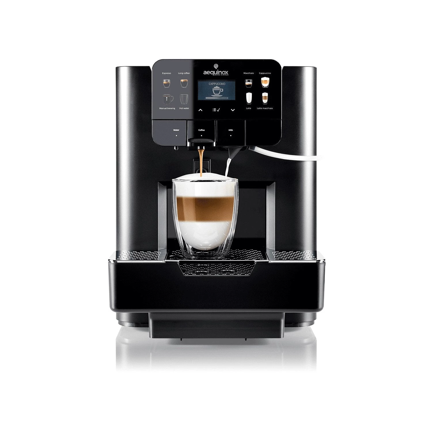 Options: Coffee, Espresso, Manual brew, Hot Water, Cappuccino, Macchiato, Latte Macchiato, Hot Milk