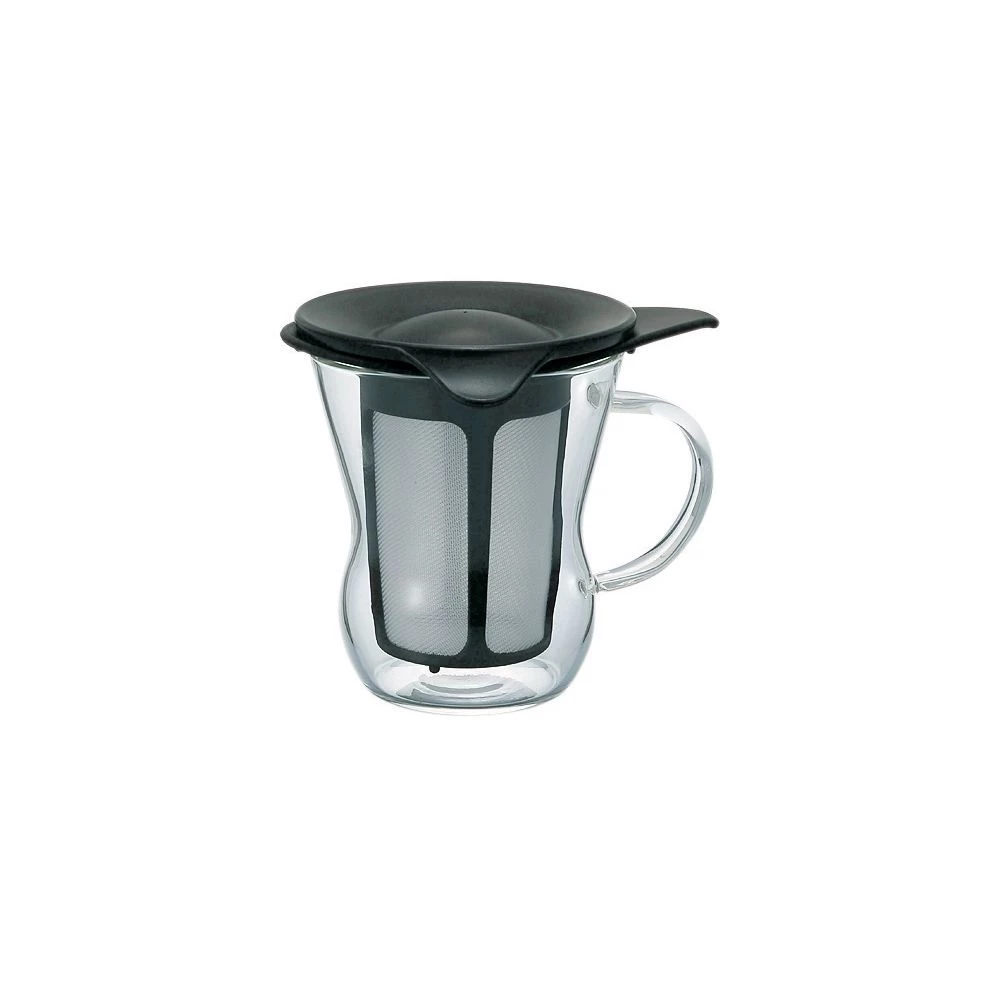 The Hario One Cup Tea Maker offers an easy and effective way to make a hassle-free cup of tea at home or at work. Add your favourite loose leaves into the big mesh filter, then pour some hot water and wait for a few moments till the tea turns into desired colour and flavour. The Hario tea maker is designed for one cup use only. It has a very easy to use and clean design with borosilicate heat-proof glass body and lid. Enjoy fresh tea whenever you like.