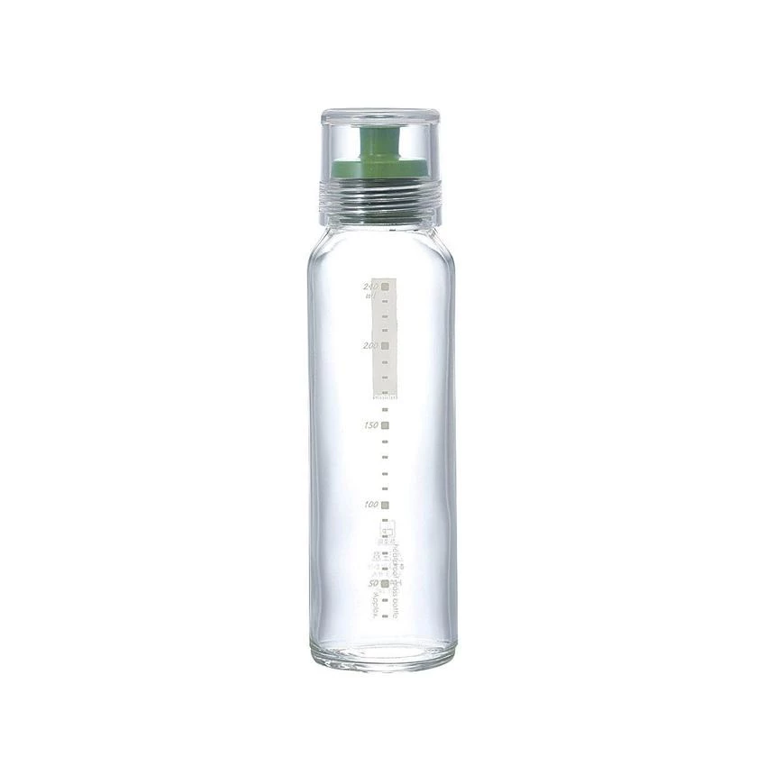 Hario is famous for manufacturing highest quality glass equipment and the Hario dressing bottle is one of those products that consists of borosilicate glass and superior heat-retention. The bottle has clear exterior markings enabling the user to observe recipes and add desired amount. It is perfect for sauces, olive oil, milk and any other kind of liquids. The Hario dressing bottle is also microwave friendly and has a capacity of 240ml.