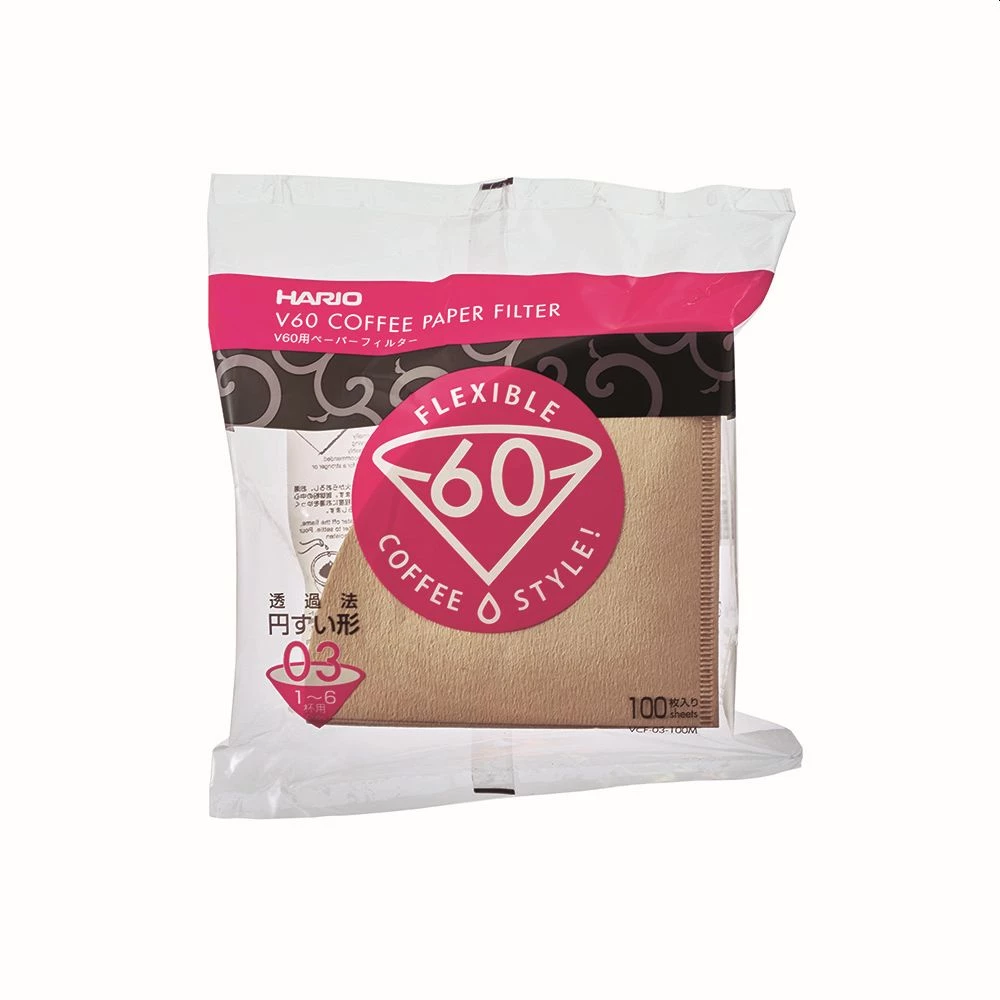 Hario V60 Coffee Filter Papers Size 03 – Brown (100 Pack Bag)