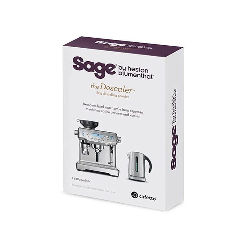 The Sage Descaler is specifically formulated cleaning powder for removing hard water scale from espresso machines, coffee brewers and kettles.