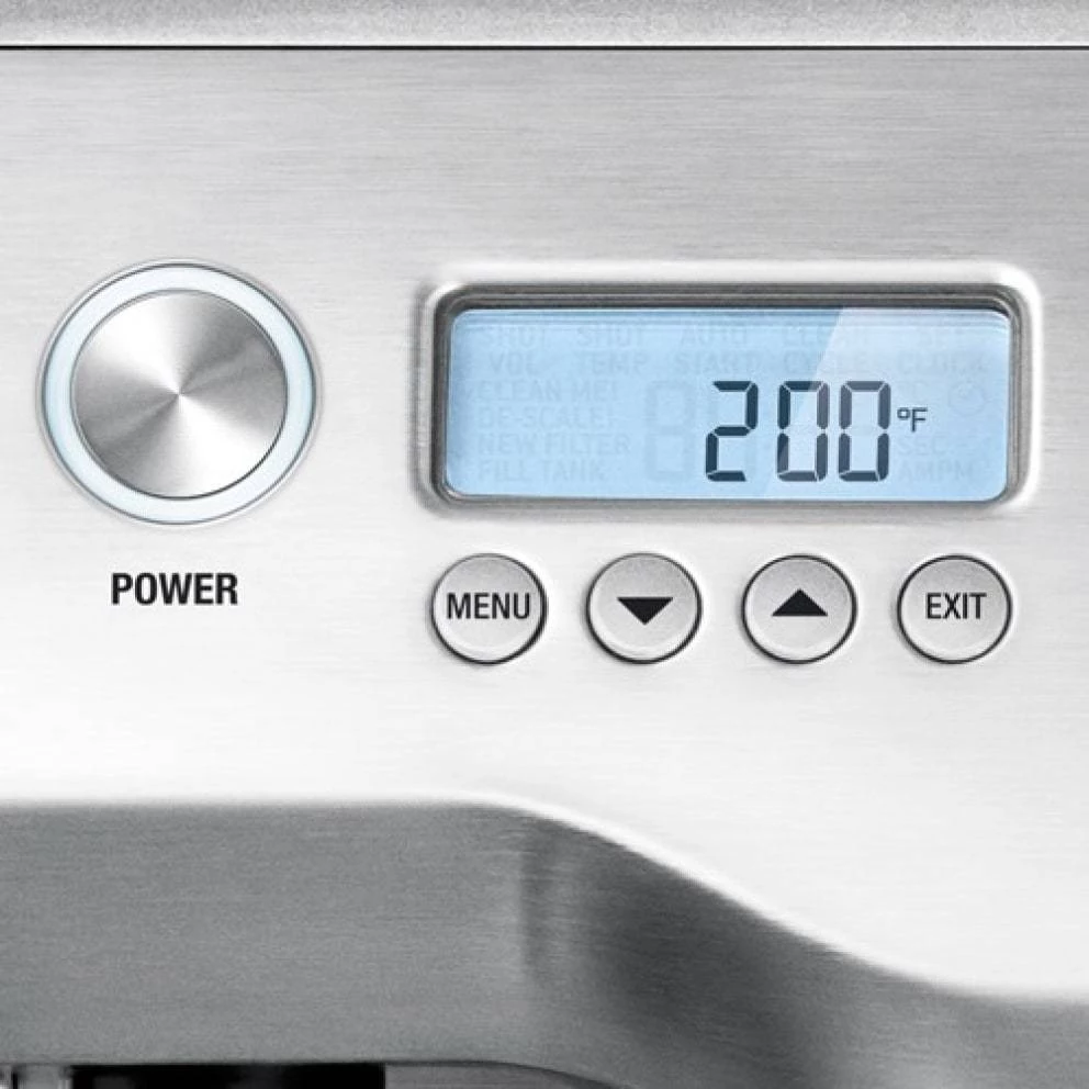 Dual stainless steel boilers and heated group head controlled by digital temperature control (PID) brings water to precisely the right temperature (+/- 1⁰C) to extract maximum flavor potential, shot after shot.