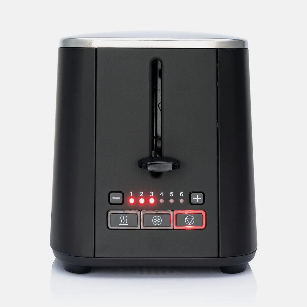 The Premium toaster has room for 2 slices and gives you 6 different toasting degrees to choose from according to your preferences. The ‘stop’ button makes it easy to pause or stop toasting early. The ‘thaw’ feature means you can toast bread straight from the freezer – making mornings a little less hectic.